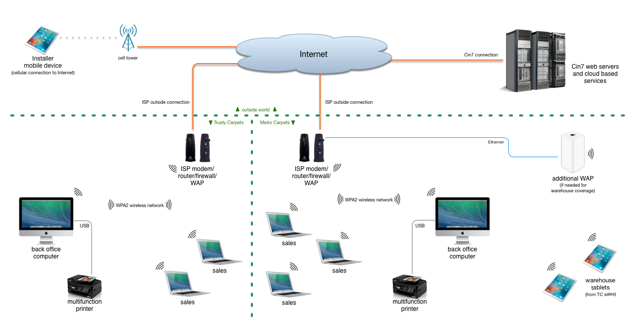 This diagram was for a course in my Information Sysytems Management degree to illustrate a proposed solution to the merger of two carpet businesses.