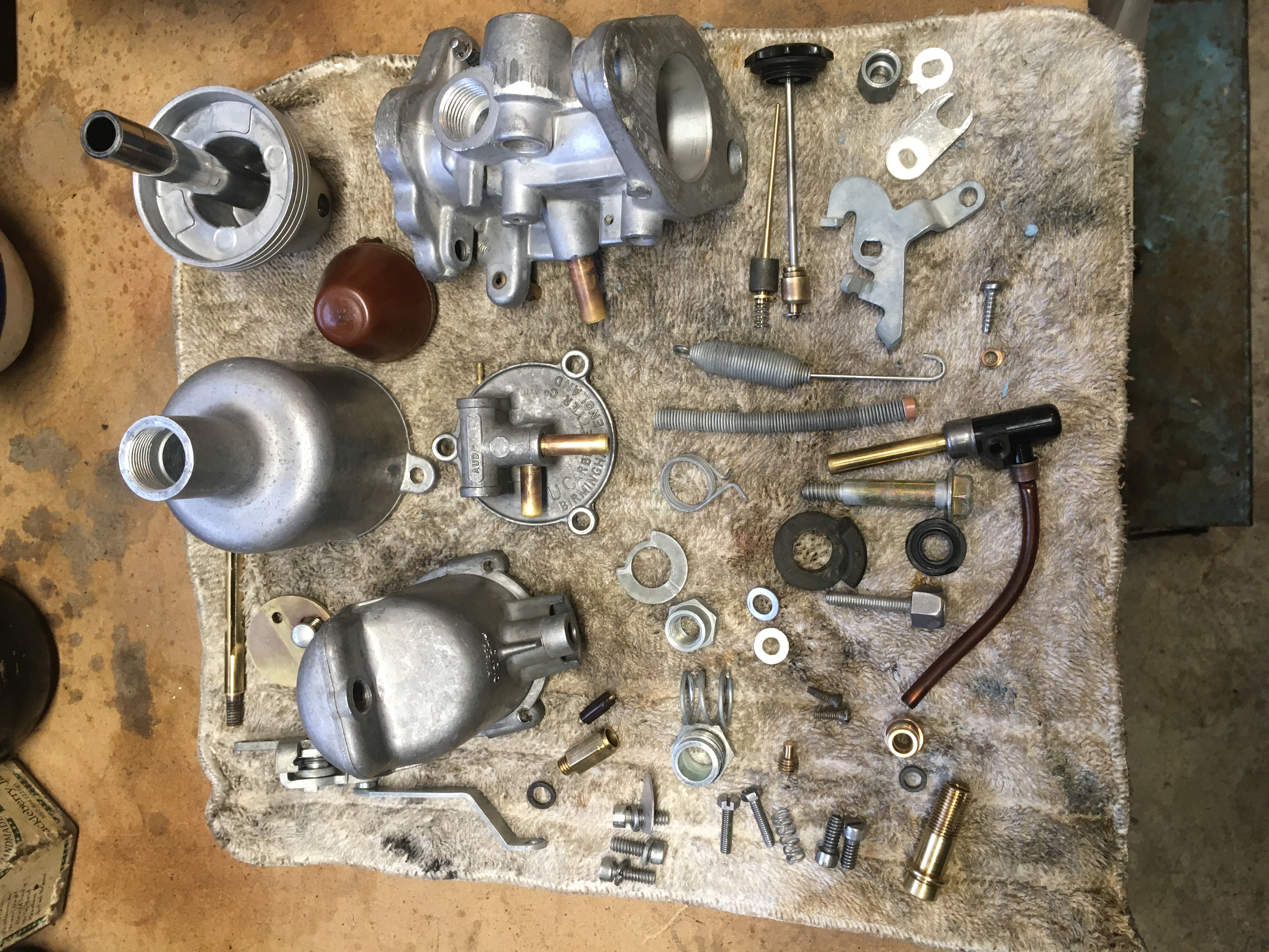 SU HS2 carb, before, during, and after. They got new jets, throttle discs, float bowl needles and seats, piston return springs, and gaskets.