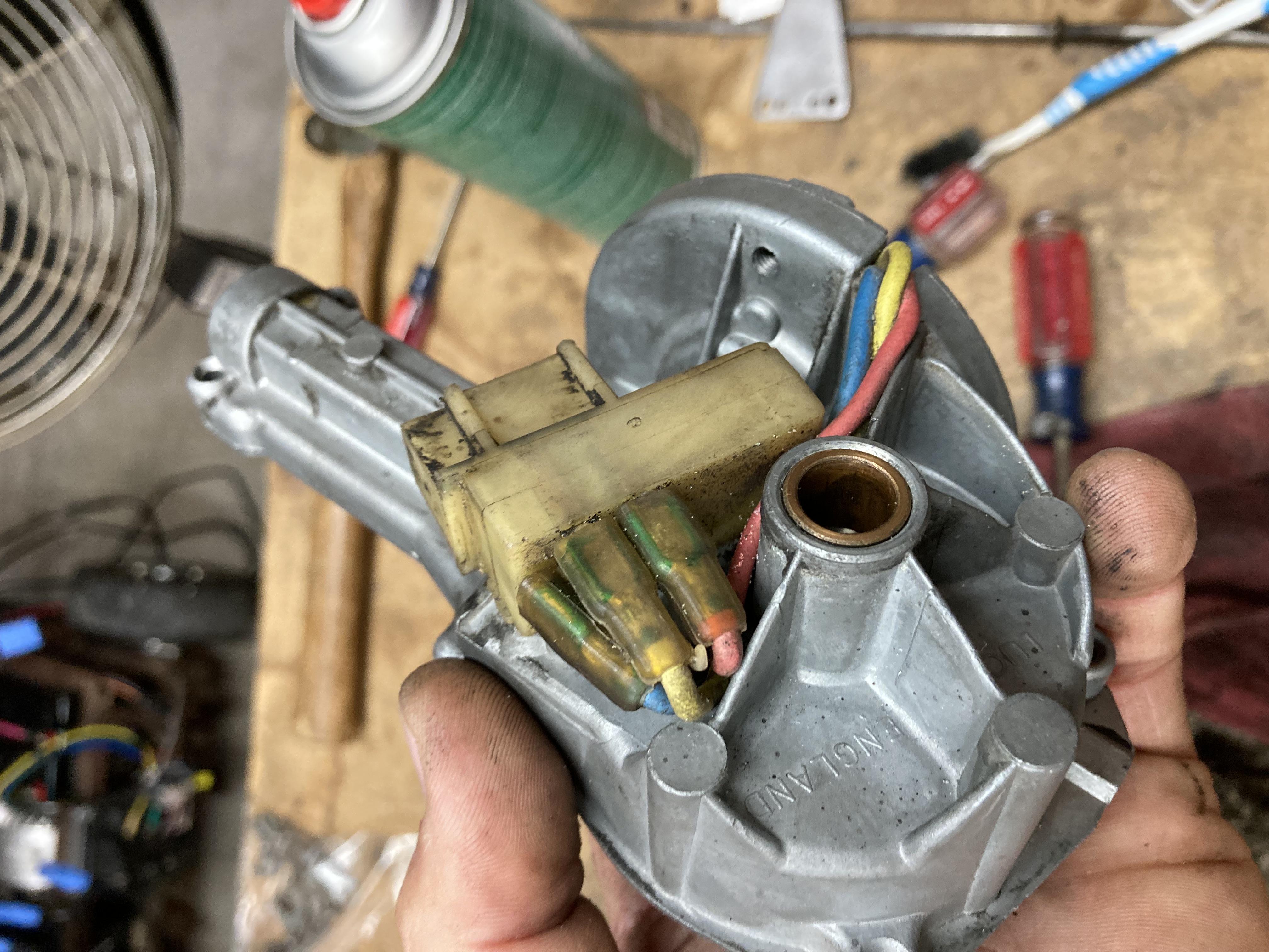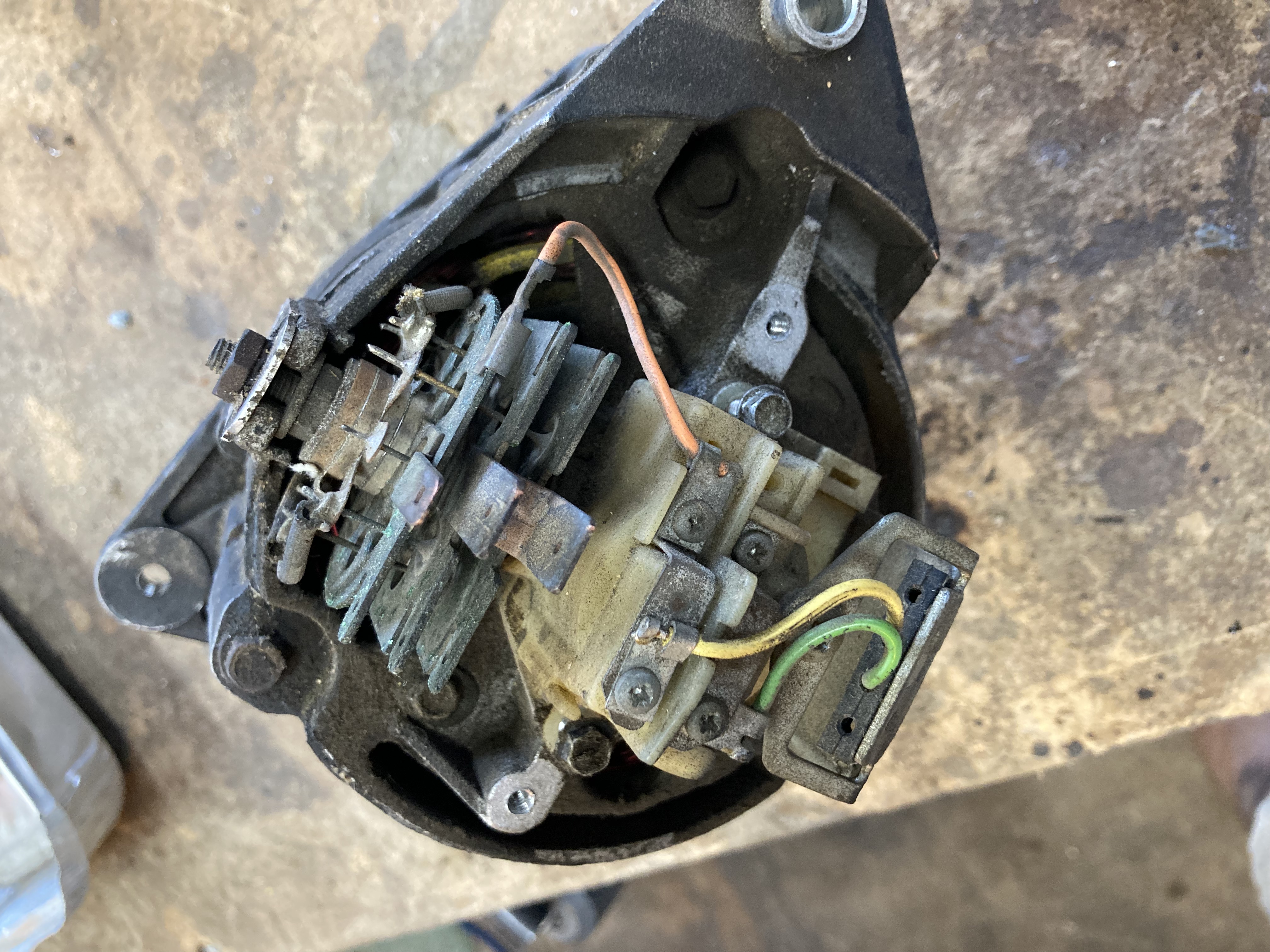 The rectifier end of the alternator (before sandblasting and treatment of contacts), wiper motor, and rear brakes (before and after).