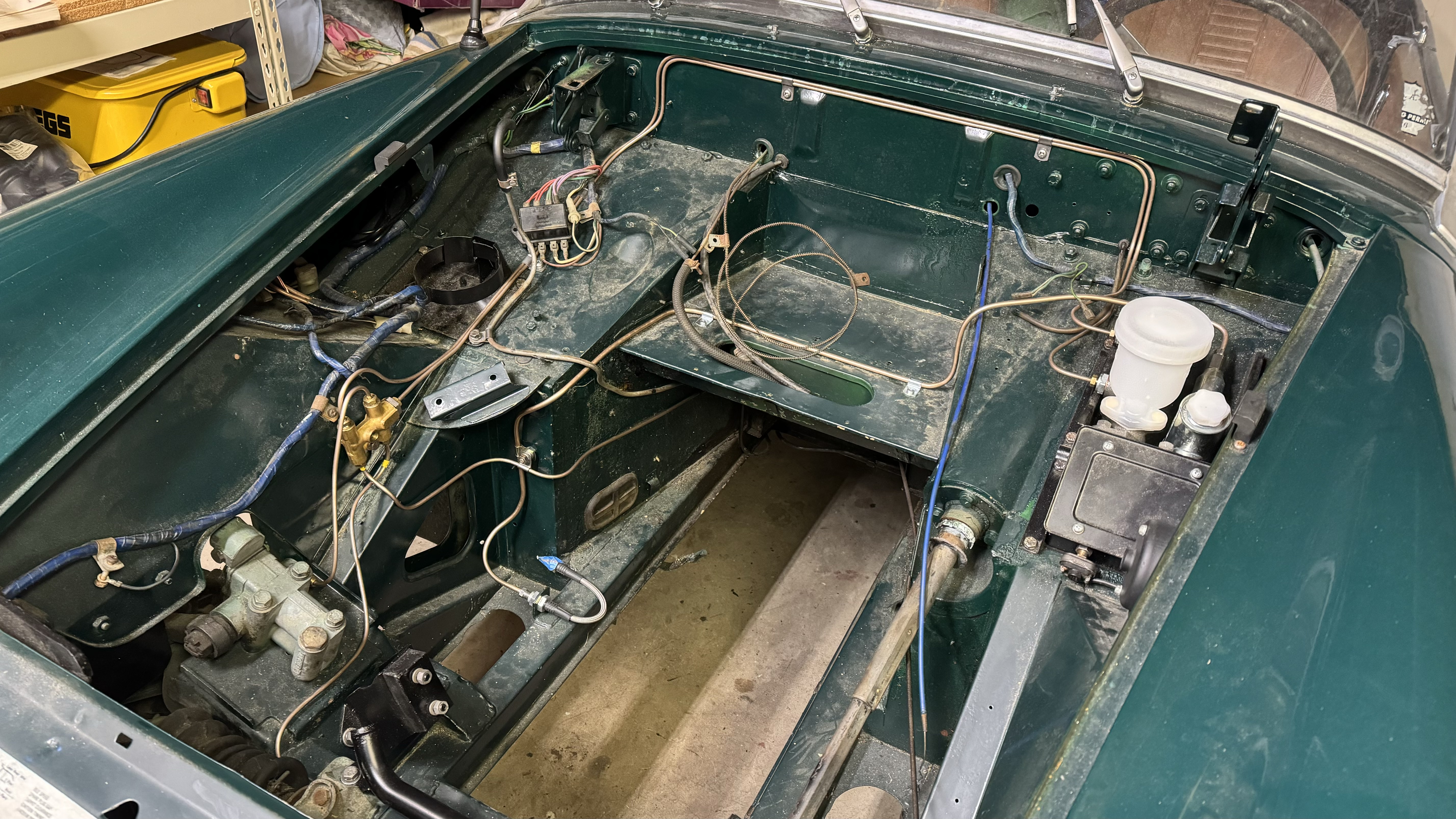 The car is almost completely rust-free, with only benign surface rust on suspension parts such as the rear leaf springs. That is being addressed as the components are renewed or replaced (as were the tired springs). The battery box suffered from some acid damage, but that sheet metal was replaced when I had the car repainted (in the original color). More parts had to come off for the paint job, but all of those have now been polished and reinstalled.