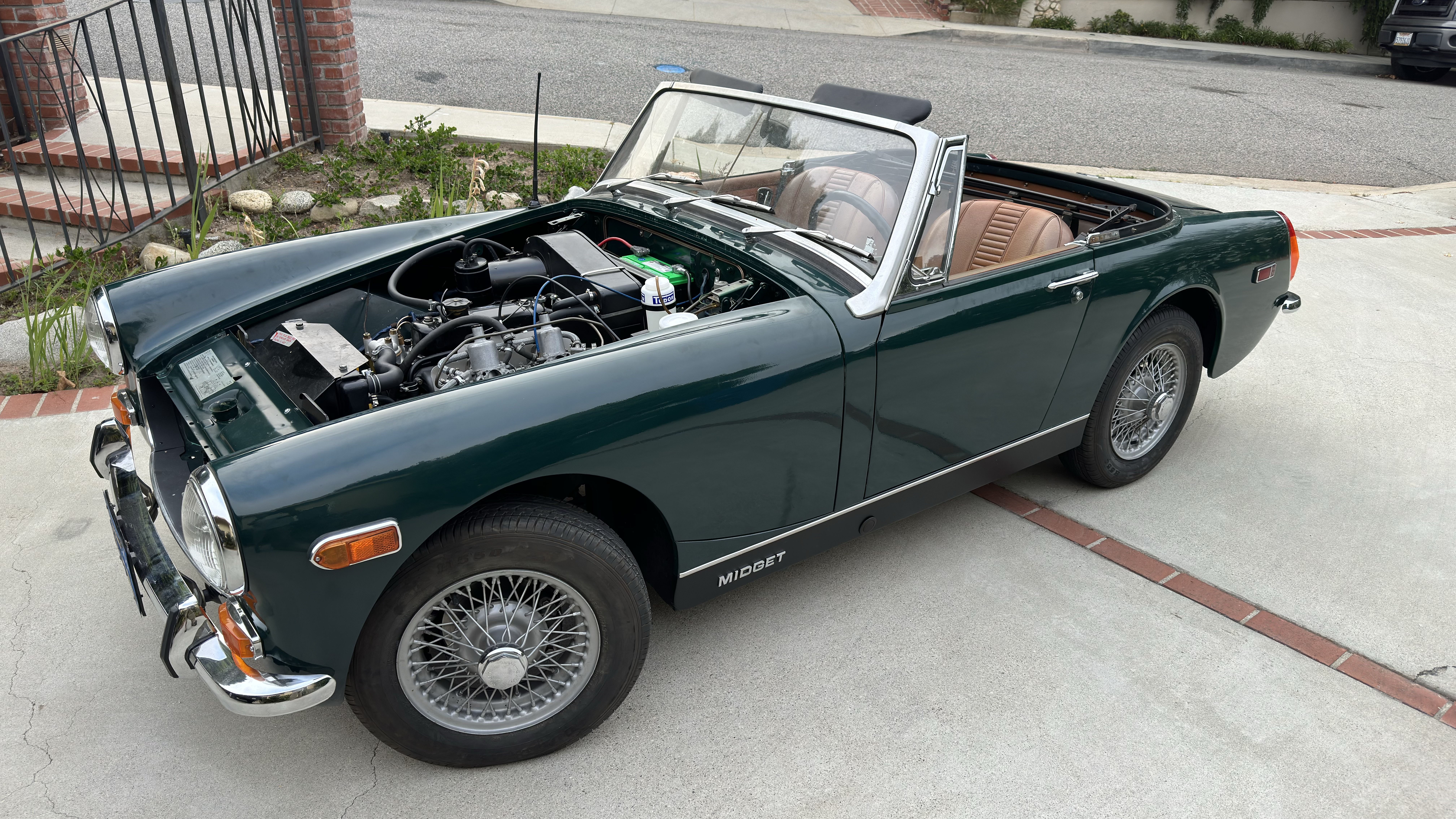 I am the third owner of this 1972 MG Midget round wheel arch mk III. The first owner's daughter drove it back and forth to college and accumulated about 80,000 miles. Then the first owner took the engine out of the car and took it apart. After a few years he sold the car and all the parts to the second owner, who stored all of it before selling it to me in 1996 for $400.