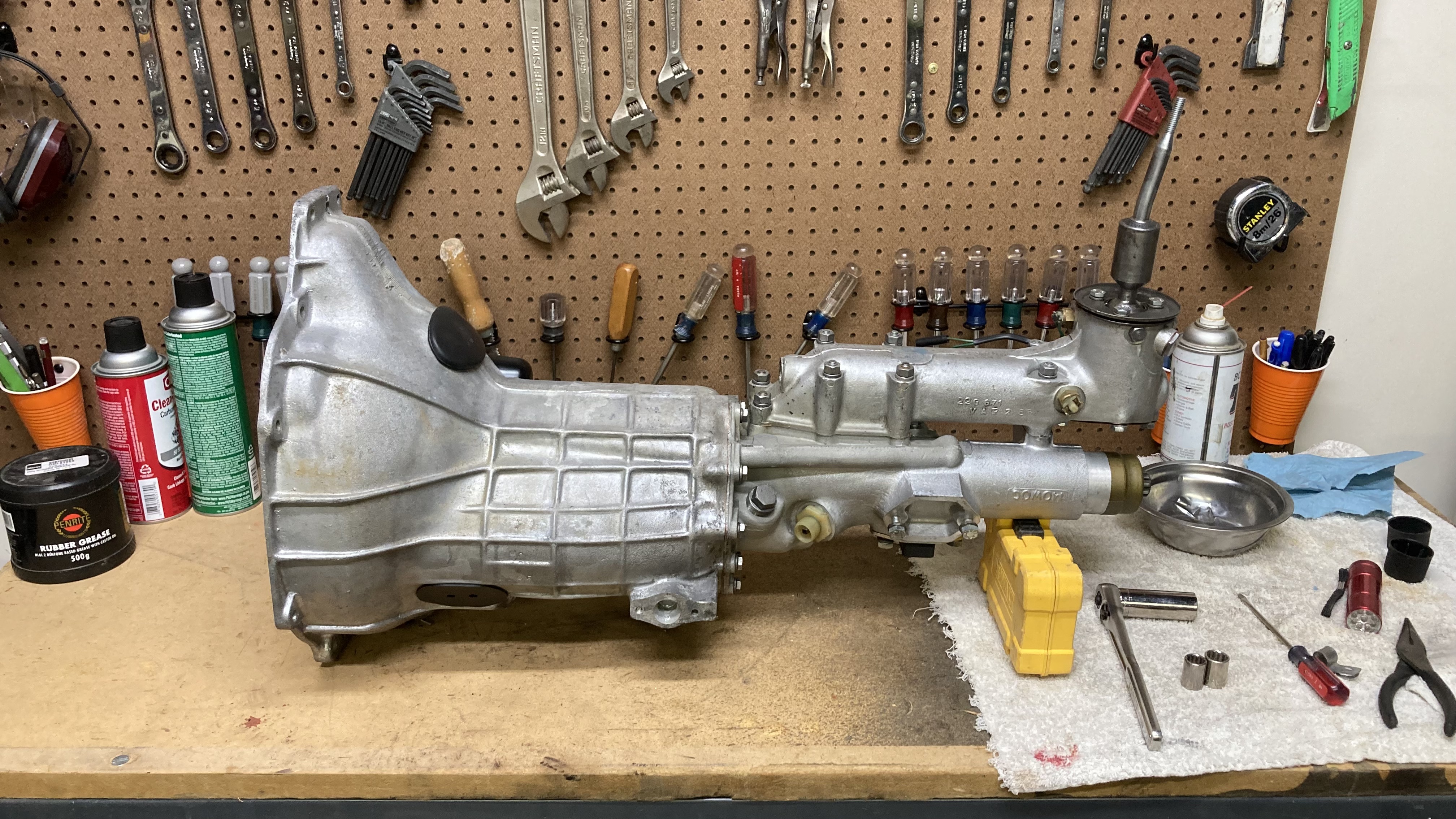 The car may have been in pieces, but nothing was missing. Despite the changes in ownership, vagaritites of long term storage, and two cross-country moves, all of the parts were present amongst the collection of cardboard boxes. Gradually, the parts were restored and made ready to go back on the car. The engine is back in one piece, having had a full rebuild with 0.020" oversized pistons fitted. The transmission was a great unknown and so was disassembled and inspected, and suspect parts replaced, an improved front oil seal fitted, and the spacer added on the 1st/2nd gear selector rod to prevent the known issue of the box getting stuck in second gear.
