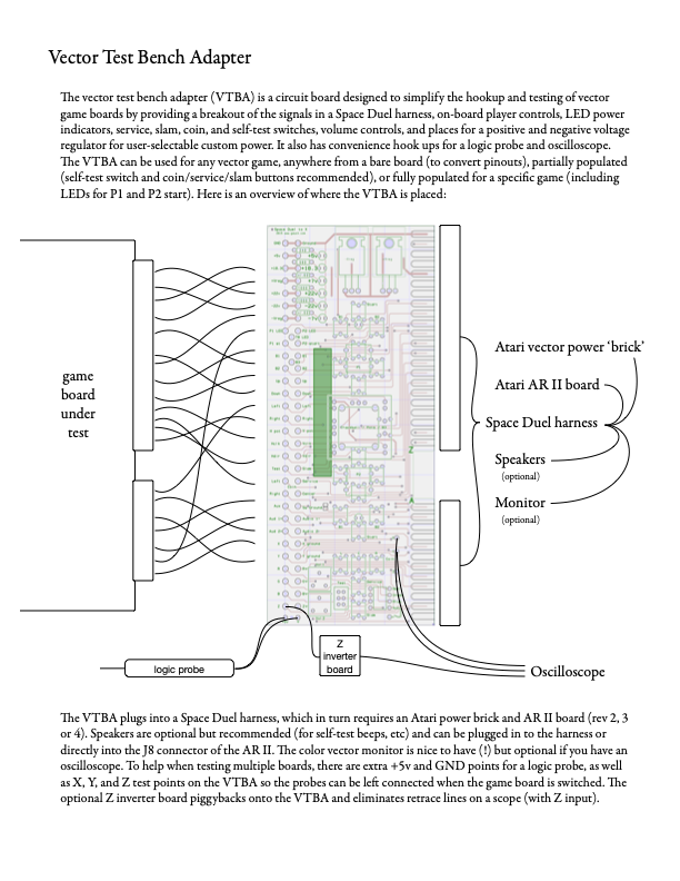 Here is a support document for a product I designed and offered to the arcade comunity. It is a printed circuit board designed to be used on a test bench, interposed between an arcade game harness and the arcade game board. It can be wired to support the different pinouts of different game boards, and can be configured in a multitude of ways to support different player controls, service switches, power indicators, and volume controls.